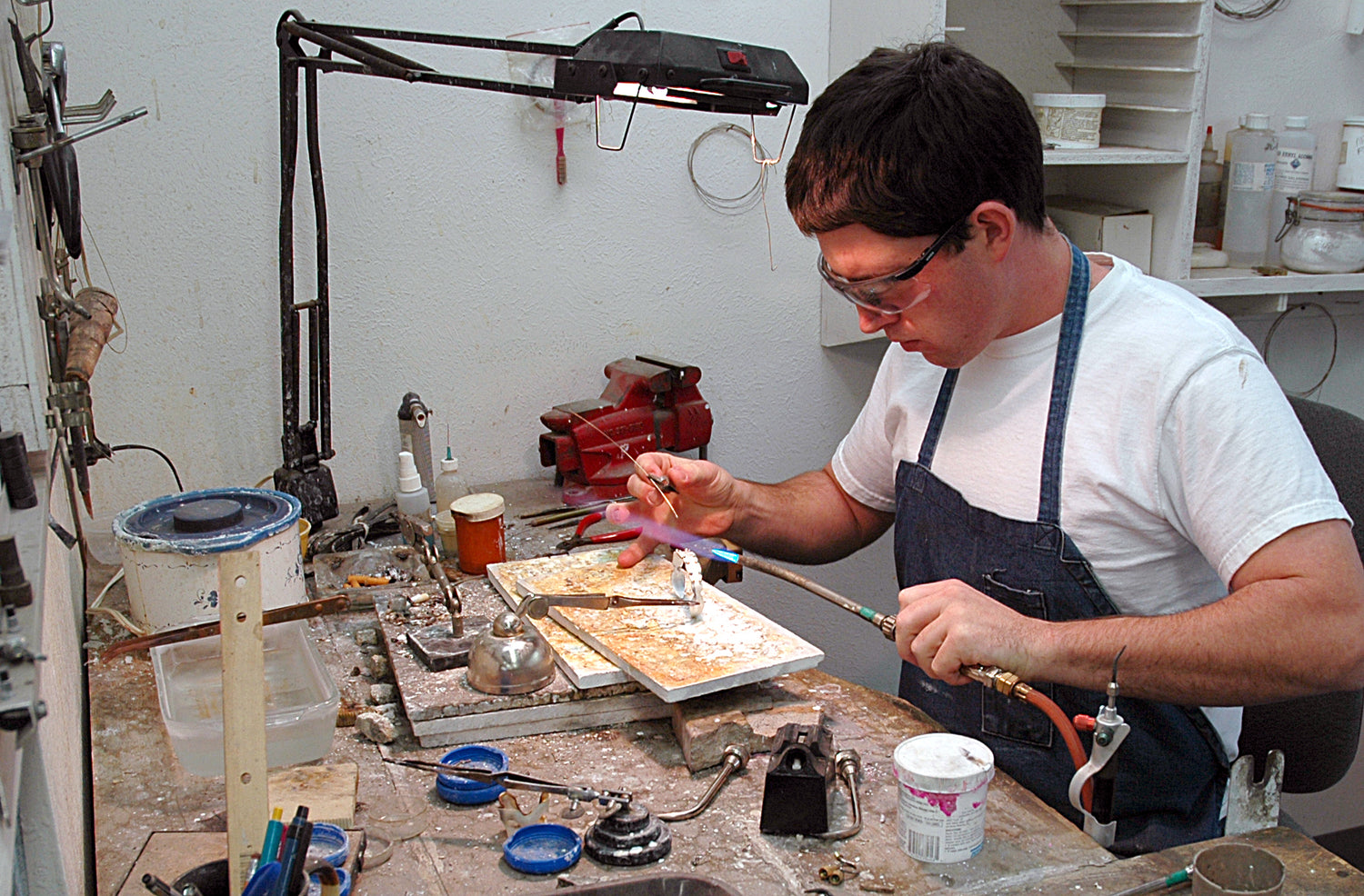 We offer repair and resizing services on pieces we’ve made. Contact us with details, and we’ll let you know how we can help.